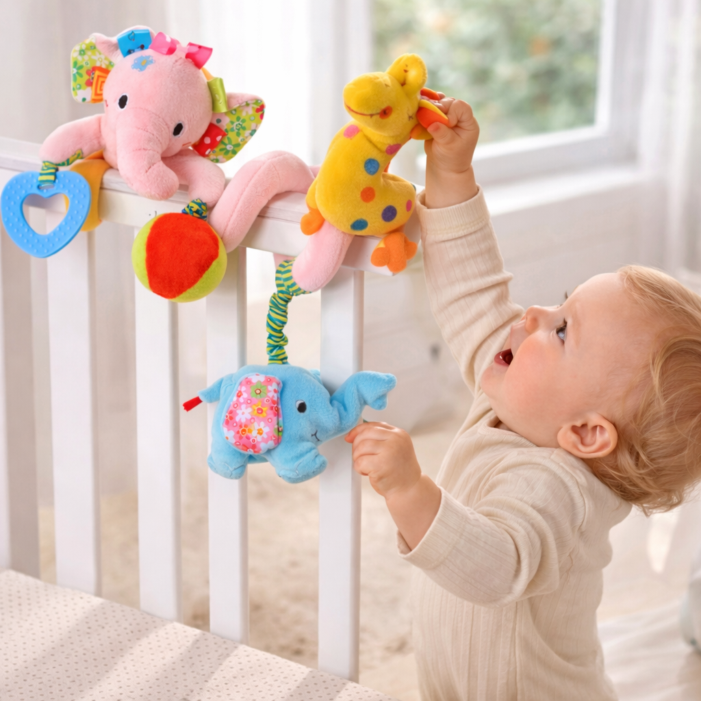 Spiral hanging toys are popular because the “reach → touch → wiggle” loop is basically baby science: it helps them explore cause-and-effect in the simplest, cutest way. 🧪👶