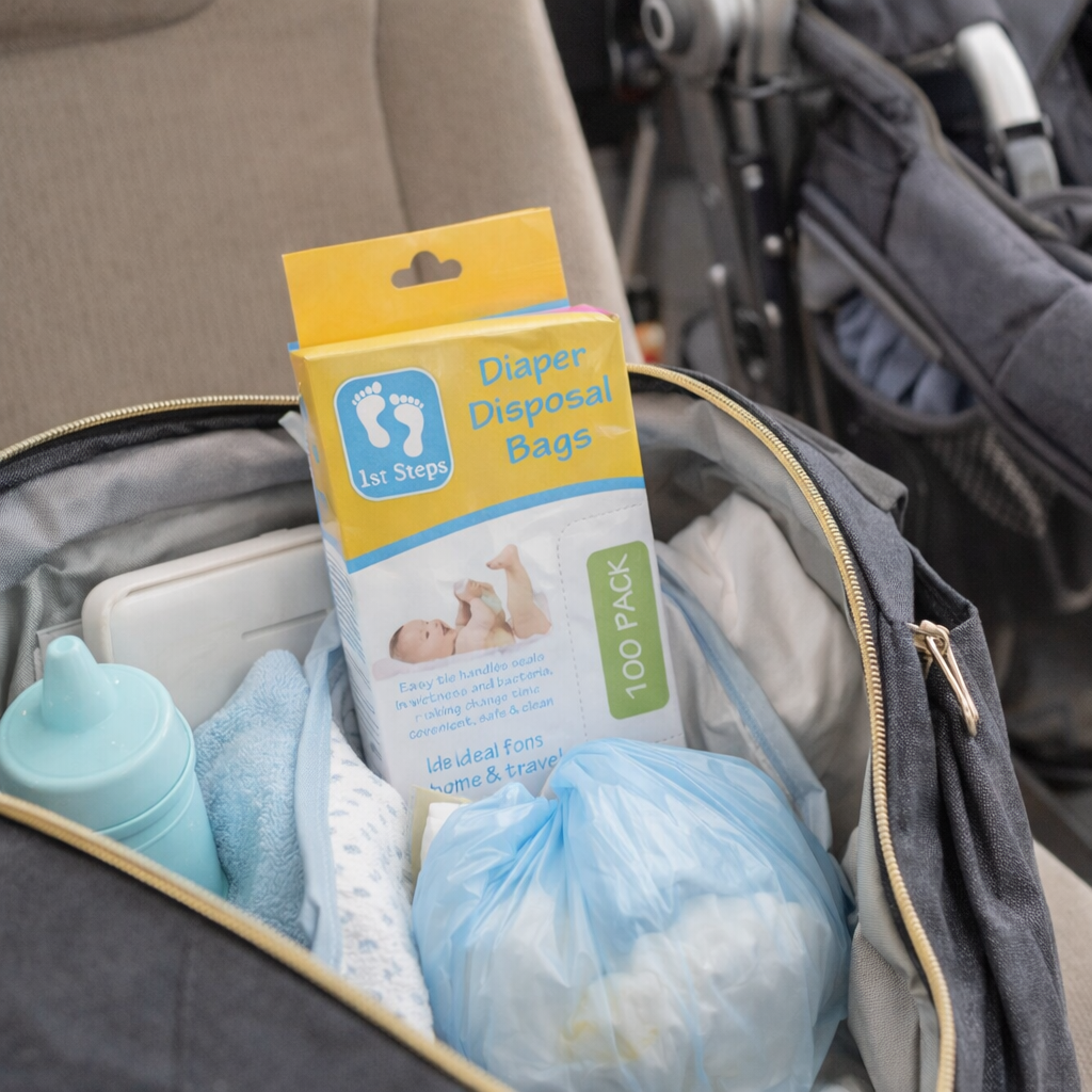Disposable nappy bags are often used not just for nappies, but also for soiled clothes, wipes, or general on-the-go clean-ups.