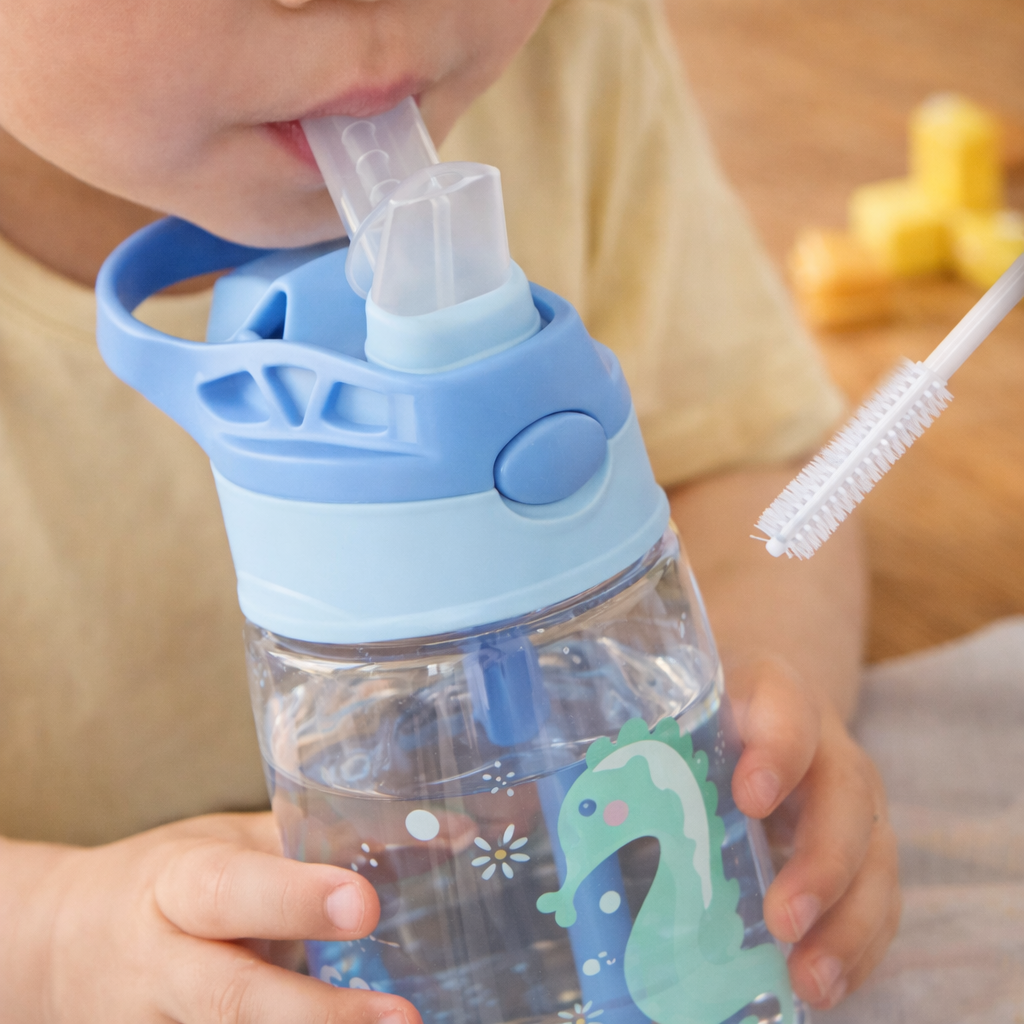 Designed for everyday adventures, the 480ml Kids Sippy Cup makes hydration simple, fun, and routine-friendly. With a playful ocean-themed design and an easy-sip duckbill straw, it’s made to support independent drinking at home, daycare, or while you’re out and about.